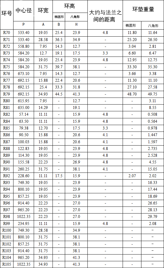 R型墊片的制造符合API 6A、6B和ASME b16.20適合API ASME/ANSI B16.5法蘭。在橢圓形和八角形配置,這兩種類型是可互換的現(xiàn)代八角型槽法蘭。